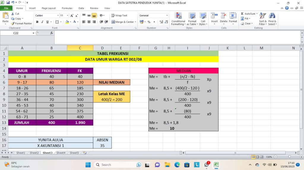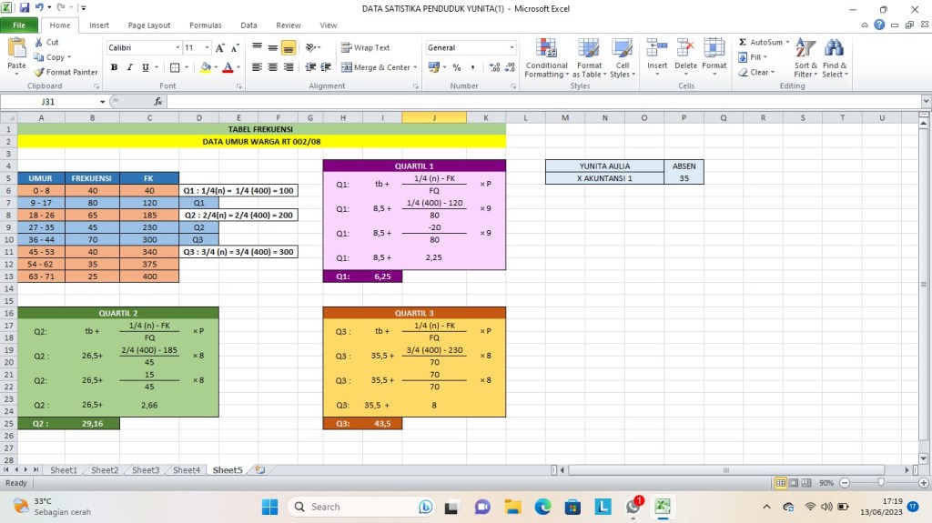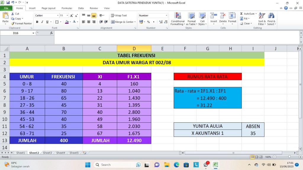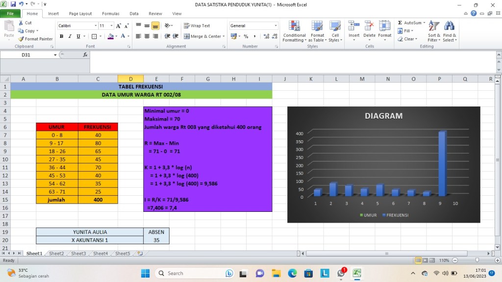 Apa kabar? Semoga kalian Sehat dan Bahagia terus ya!! Kali ini Saya Yunita Aulia kelas X AKL 1 akan menampilkan tugas akhir matematika dengan materi statistika data umur penduduk dimana tugas ini berisikan :